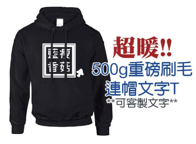 客製化團體服/重磅連帽T(黑色)/文字T/藍瘦香菇帽T/